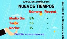 ¿Sabes qué número salió hoy en la noche? Los números ganadores en el sorteo de Nuevos Tiempos se corresponden con el 84 para el sorteo de día, 56 para el sorteo de tarde y el 15 para el sorteo de noche respectivamente.