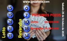 Puede consultar la información de los sorteos de la lotería JPS de Costa Rica en esta página. Los últimos juegos que se han celebrado son los sorteos de Nuevos Tiempos en su modalidad de día y noche correspondientes al Domingo 26 de Octubre de 2025, el sorteo del Lotto con su Revancha el Sábado 25 de Octubre de 2025, el sorteo de 3 Monazos el día Domingo 26 de Octubre de 2025, el último sorteo de la Lotería Nacional el Domingo 26 de Octubre de 2025 y por último el sorteo de la Lotería Popular el Viernes 24 de Octubre de 2025